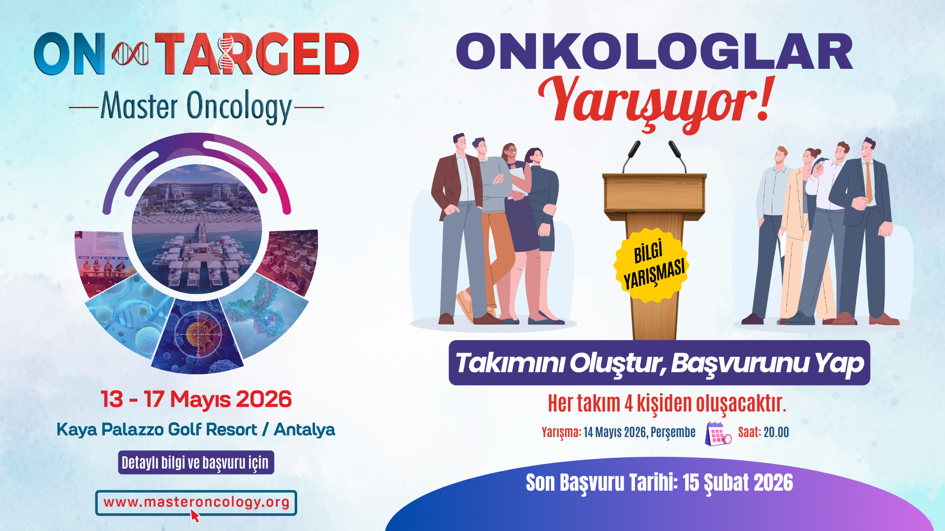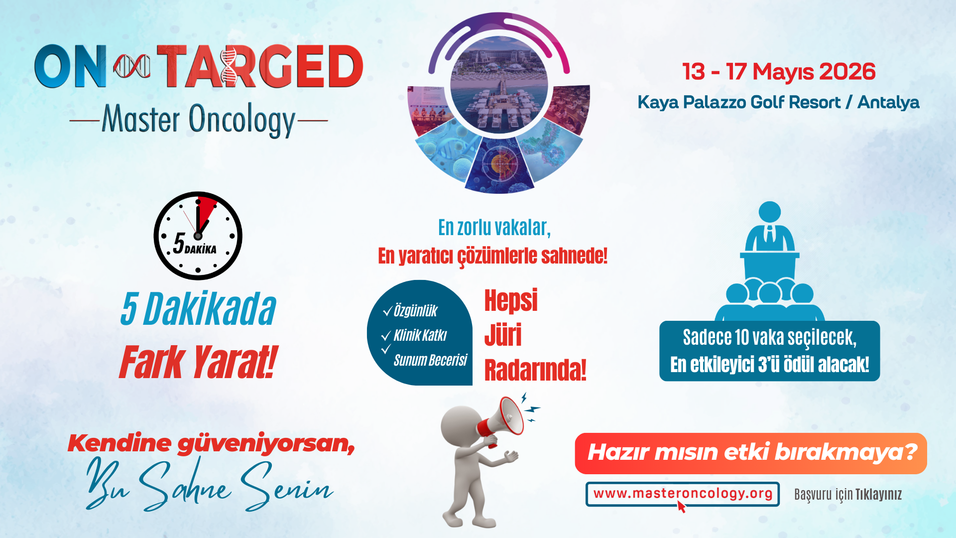 Bu yıl Tıp Araştırmaları Geliştirme ve Eğitimi Derneği olarak 13-17 Mayıs 2026 tarihleri arasında “ON∞TARGED Master Oncology“ toplantısının dördüncüsünü Kaya Palazzo Hotel & Resort’de gerçekleştirmeyi planlamaktayız.